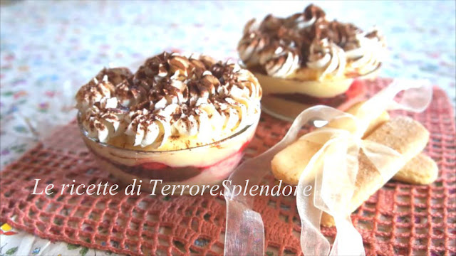 Ciao a tutti, oggi vi propongo un dessert davvero goloso, la zuppa inglese! Potete bagnare i savoiardi con l'archermes oppure con del caffè, io l atrovo deliziosa anche così. Ho pensato di renderla più golosa mettendo dei ciuffetti di panna montata...vediamo di seguito come realizzarla